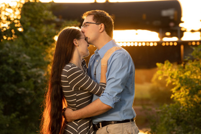 Our time with these two was a cup filled to overflowing. Mom and Dad were hard at work making sure there were some hay bales in the loft for us to work with. Kari trusted me and whinnied so the horses came up to say hello. They gave us some great composition. Then we had this perfect light. To top it all off Anisa flashed Aaron her puppy dog eyes - and well, who could resist taking off their socks and shoes and getting in the water for some fun shots :). After that, the sun popped through a bank of clouds for a perfect sunset shot, just as we came to a little private spot that seemed made for the two of them. At that moment with all of that golden light pouring around them, a train just happened to pass by on the tracks, and we had the most amazing light show as the boxcars dashed by. It really was something to cherish and remember, watching the two of them glowing and gilded in between the flashes of light. It was like a fireworks show before the Fourth. :)